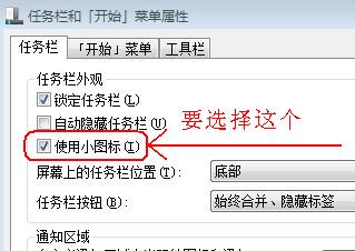 6.如果您的屏幕分辨率高度是768,那么需要调整一下,如果高度大于768,就不用调整。 7.如何调整:在任务栏空白处,点鼠标右键,再点属性,出来1个窗口(如下图所示),钩选 使用小图标,再点确定就可以了。 |